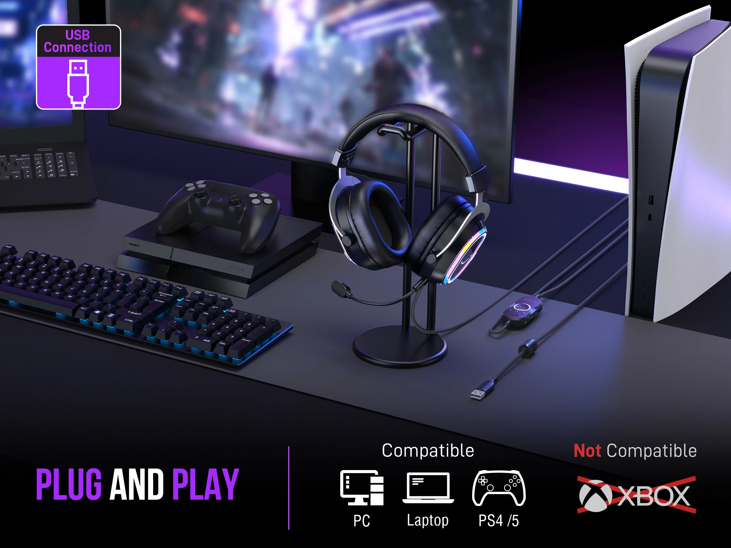 Sin controladores ni complicaciones: simplemente conecte el conector USB a su PC, PS4, PS5 o Mac y comience a jugar al instante.