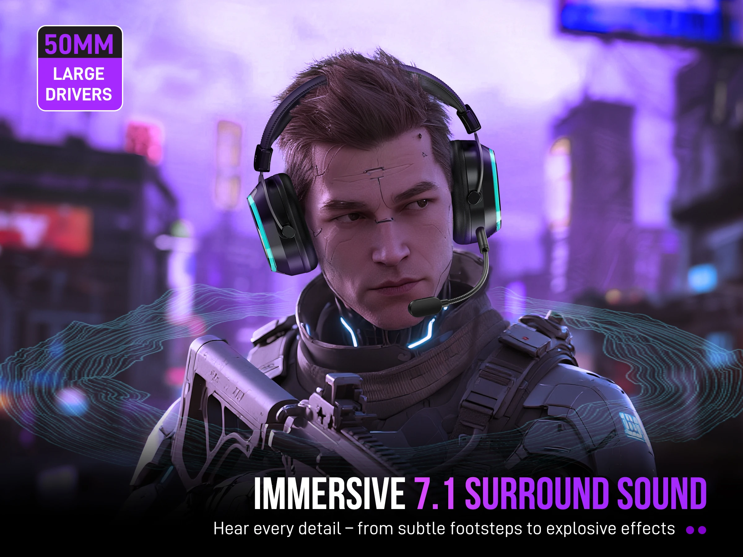 Ingrese a un mundo de audio realista con sonido envolvente 7.1 de alta precisión, mejorando la conciencia espacial en FPS, RPG y juegos de acción.Localice pasos enemigos, disparos distantes y detalles ambientales con 360° Precisión direccional: brindándole la ventaja táctica en cada batalla.